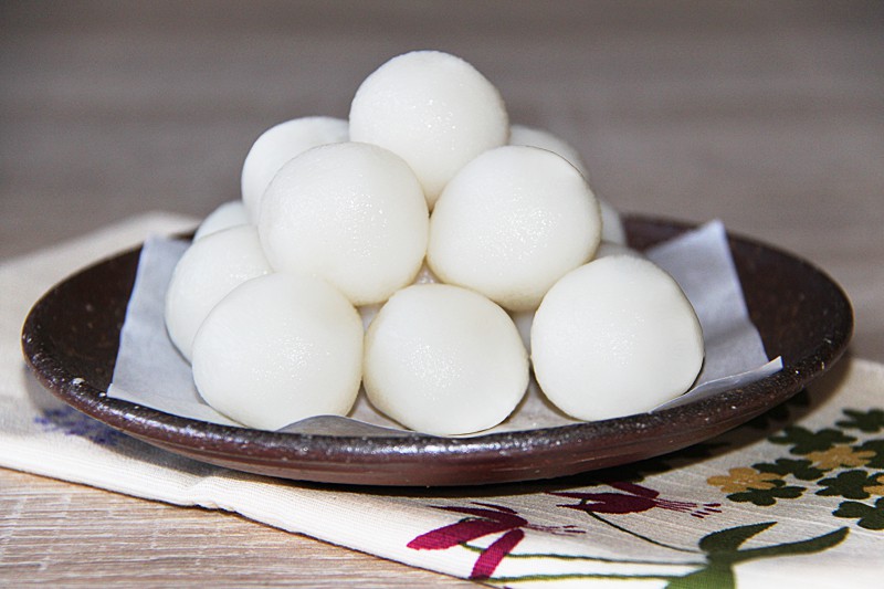 Nếu bánh Trung thu của người Nhật có hình trăng khuyết thì món bánh Trung thu của người Nhật phần nhiều được nặn hình tròn. Đó chính là món bánh Tsukimi Dango được làm từ bột gạo nếp.
